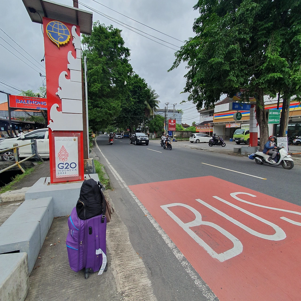 여러 번 걸어 다니며 오갔던 길이라 캐리어를 끌고 충분히 갈 수 있을 거라고 생각했다. 그렇게 잘 굴러가지 않는 캐리어를 거의 들다시피 가지고 가다가, 구글맵에 표시된 우붓으로 가는 버스정류장이 눈앞에 보일 때는 사막에서 오아시스를 찾은 듯했다. 곧 올 예정인 버스를 기다리며, 버스에 앉아 그동안 발리에서 있었던 일들의 글감을 정리하는 모습, 신혼여행에서 다녀왔던, 꼭 가보고 싶었던 곳을 가보는 나의 모습도 상상해 보았다.