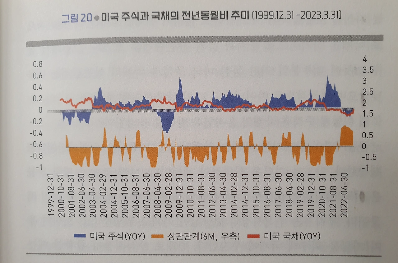 포트폴리오 위험을 낮추기 위해 주식과 음의 상관관계를 갖는 국채를 포함하는 것이 중요하다. 국채는 주가 폭락 시 투자자금이 몰리는 안전자산으로, 주가와 반대로 움직이는 경향이 있다. (왜냐하면, 경기가 좋으면 기업이 성장하므로 사람들이 기업에 투자를 많이 하고 기업의 주가가 오른다. 반대로 경기가 나쁘면 기업의 성장세가 약해지고 상대적으로 안정적인 상품에 투자를 하기 때문에 국채-국가채권의 수요가 늘고, 국채의 가격이 오른다.)