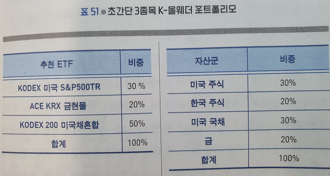 위의 비율이 복잡하다면, 이렇게 초간단 3 종목 K-올웨더 포트폴리오를 활용해 보는 것도 좋겠다.