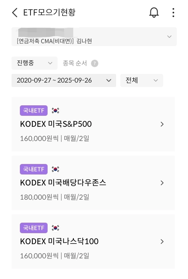 매번 어떤 종목을 매수해야 할지 고민하는 것보다, 주요 종목을 어느 정도 정해두고 'ETF 모으기'와 같은 시스템을 활용하면 좋다. 매달, 정해진 날짜에 내가 원하는 종목을 알아서 매수해 주는 방식이다.
