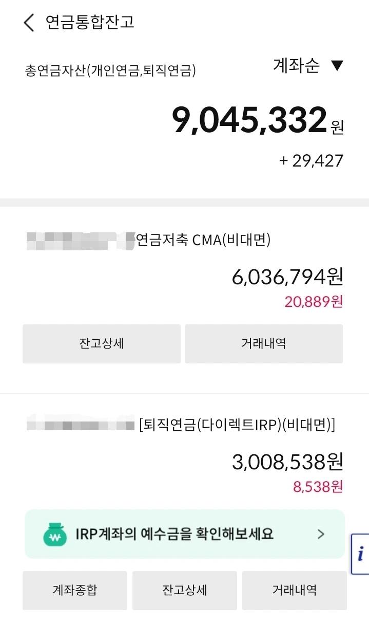 #1 우선 지난 책을 읽고, 8월 말에 삼성 mop에 연금저축 계좌와 IRP 계좌를 개설해 연금저축 계좌에는 600만 원을 넣어 두었고, IRP 계좌에는 300만 원을 넣어둔 상태였다.