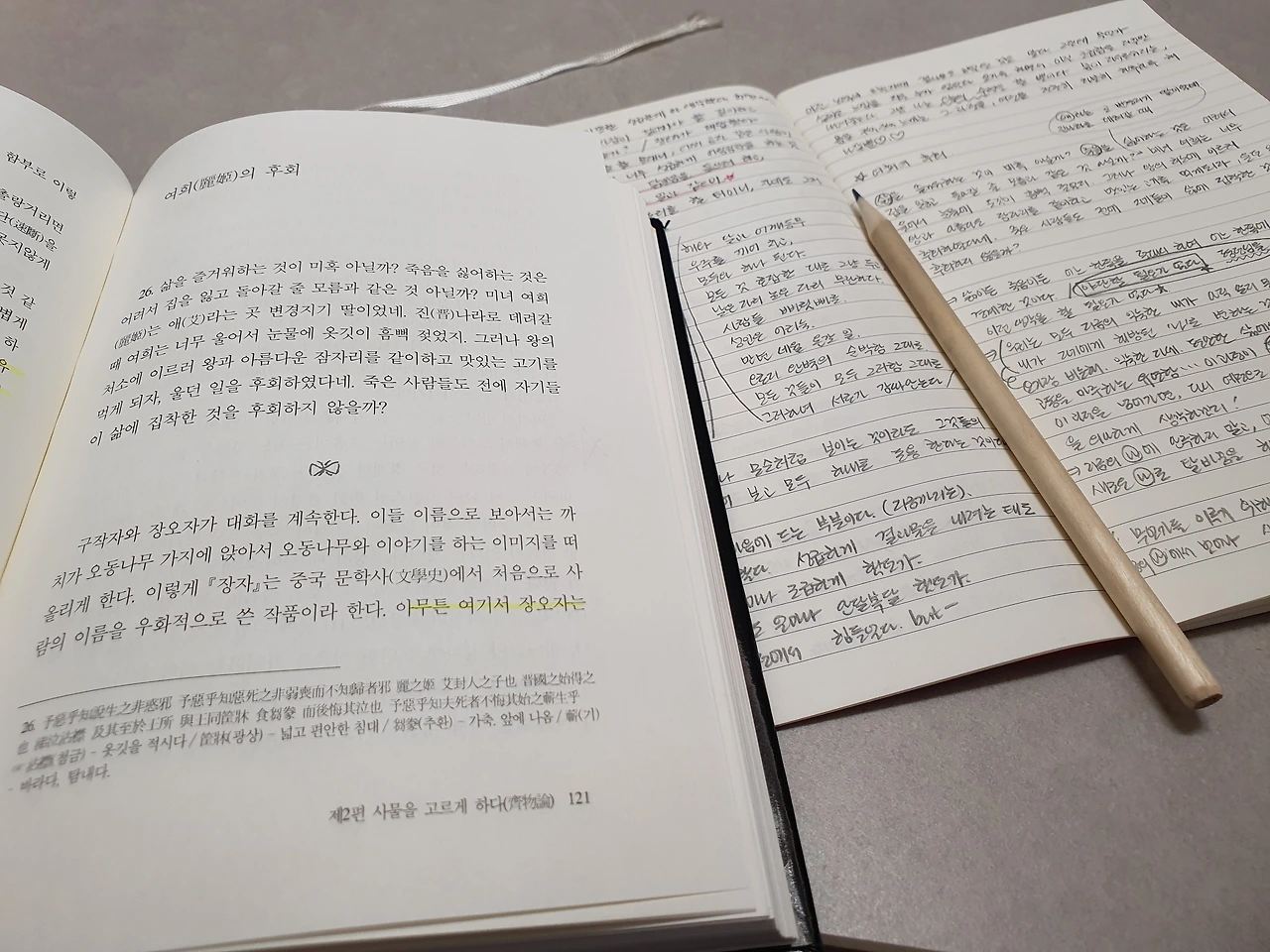 갑자기 엄마의 학창 시절 이야기를 꺼낸 이유는, 이렇게 책을 읽다 보면 '어? 서로 다른 얘기 같은데?' 하는 부분을 만나기도 하거든. 그럴 때 지나치지 말고 곰곰이 생각하고 뜯어보면 그 문장의 의미가 내 삶에 더 깊이 다가온다는 이야기를 해주고 싶어서야. 앞으로도 서로 다른 듯 하지만 하나의 이야기를 하고 있는 장자 함께 나누어보자.