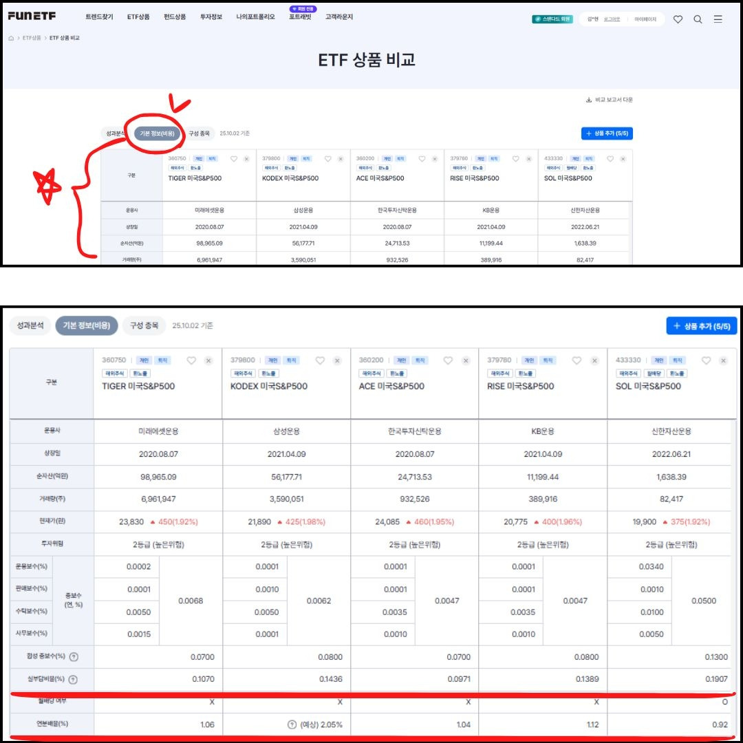 A. ETF도 '가성비' 따져보자! - 펀드 운용 보수 & 연분배율 (위 네이버증권 화면에서 ④)