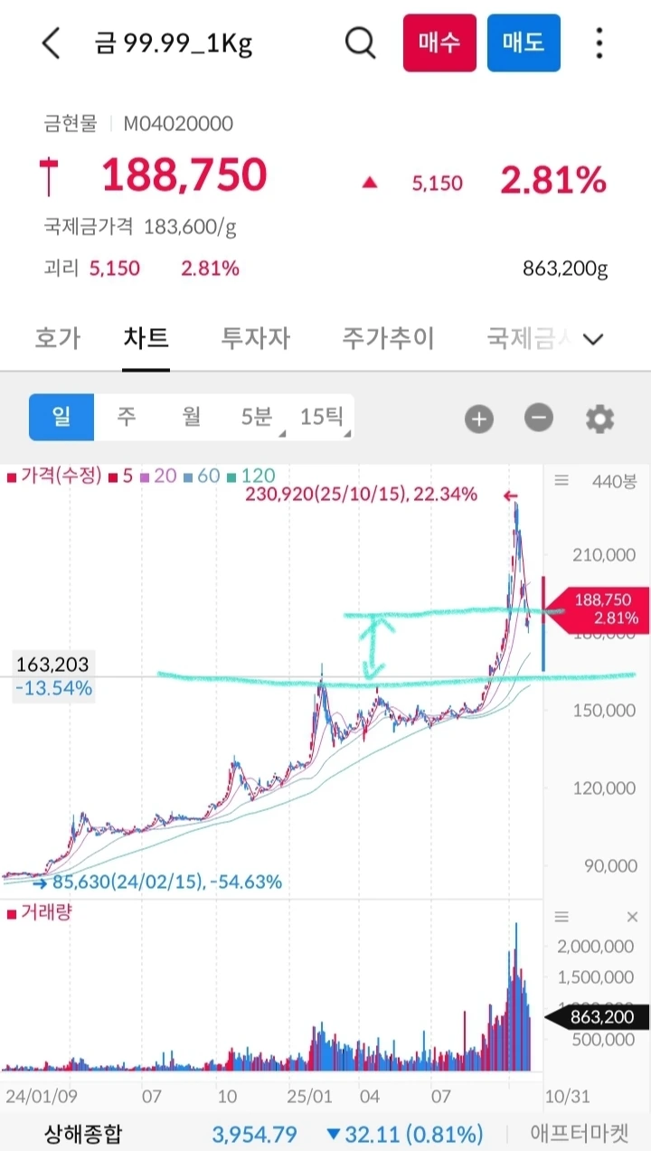 가만히 보니, 그전 가장 높은 구간이 16만 원 정도가 된다. 그리고 현재 가격은 18만 원 정도여서 내 생각에 적당한 가격은 그 사이인 17만 원 정도에 구매하면 좋지 않을까~ (그리고 오르면 더 좋지 않을까^^;;;) 그런 생각을 해 보았다. 오늘은 장이 마감되어 당장 구매하지 못했고, 앞으로 추이를 지켜보면서 17만 원선이 되면 구매해 보자는 계획을 세웠다.