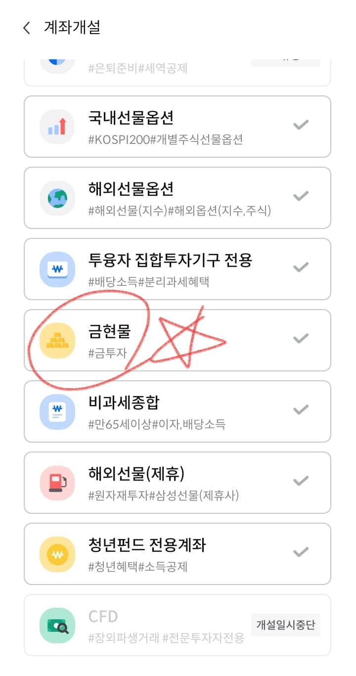 나의 경우에는 삼성 mop을 사용하고 있는데 (그냥 맨 처음 삼성 mop에서 주식 계좌를 개설했어요^^;;; 기존 사용하던 주식 어플에도 금현물 계좌 개설 메뉴가 있을 거예요.)