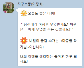 빛쓰다 글쓰기 인증 이어가기, 두 번째 글감 :: 지구소풍 이정희 작가님