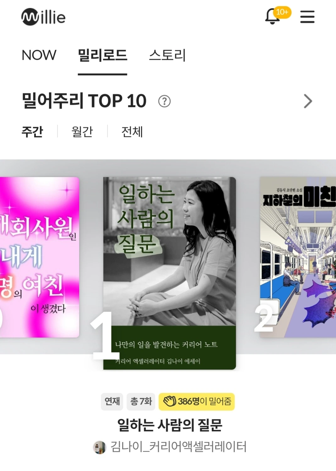 [일하는 사람의 질문] 밀리로드 1위....!!!