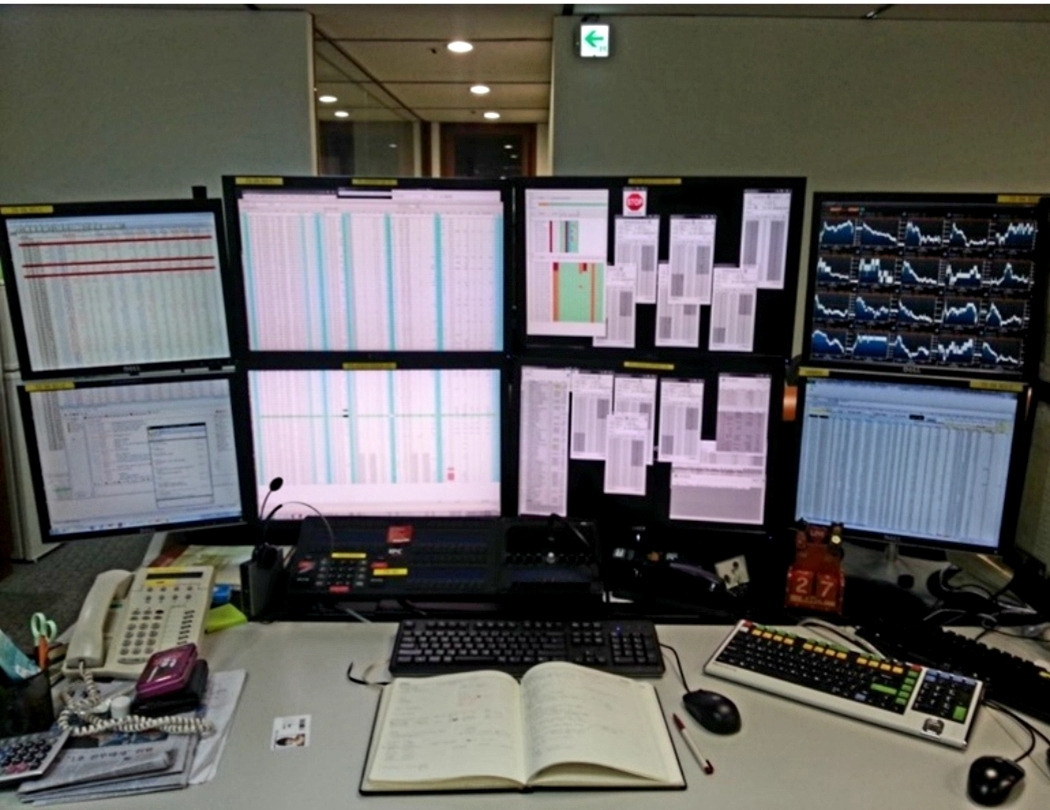 좋은 회사, 연봉 이야기를 할 때 종종 보여드리는, 예전 회사의 내 자리 사진. 모니터 10개쯤에 둘러쌓인, IB(Investment Bank) 세일즈/트레이더의 책상.