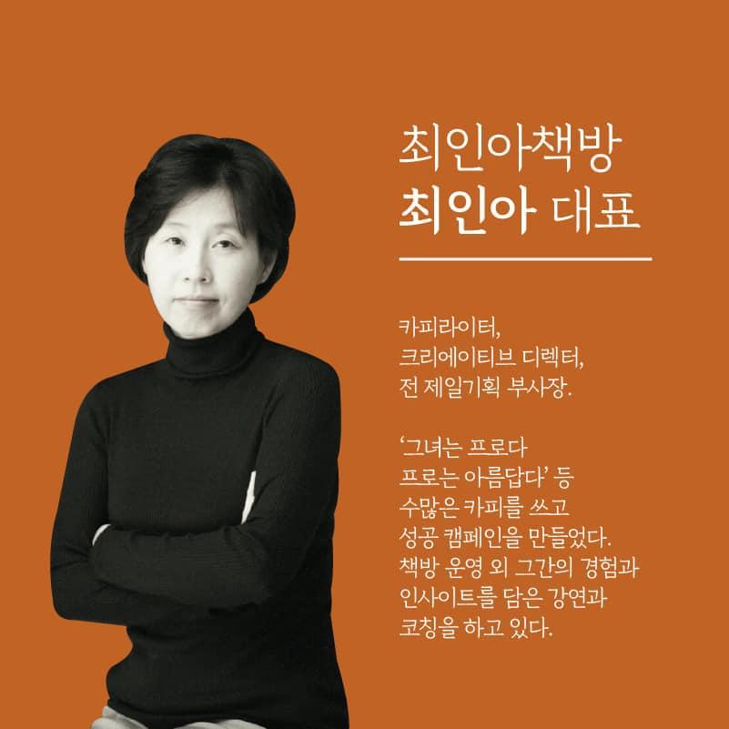 누군가의 커리어 고민을 듣고 솔루션을 함께 찾아가는 역할을 하지만, 나 역시 고민될때가 있다. 그럴땐 손에 잡히는 대로 책을 읽거나, 좋아하는 글을 다시 찬찬히 읽기도 하는데 최인아 대표님(전 제일기획 부사장, 현 최인아책방 책방 마님)의 글이 특히 와닿을 때가 많았다. 파워브랜드가 된 이 분도 이런 고민을 하셨구나, 나와 마주하는 분들께도 이런 이야기들을 드리면 좋겠다 등등의 생각들.