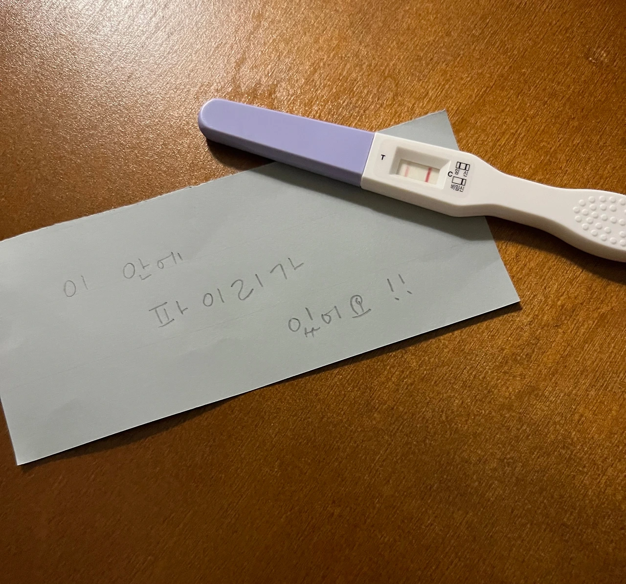 피곤에 지친 전두엽으론 이 한 줄짜리 문장도 해독하기가 어려웠다. 미간을 찌푸린 채 한 줄짜리 문장을 뚫어져라 쳐다보고만 있었다. 답답했던지 아내는 결국 숨겨뒀던 '그것'을 꺼내 내 앞에 툭 내놓았다. 그리고 '그것'을 보자마자 종이에 적힌 문장의 의미를 알 수 있었다.