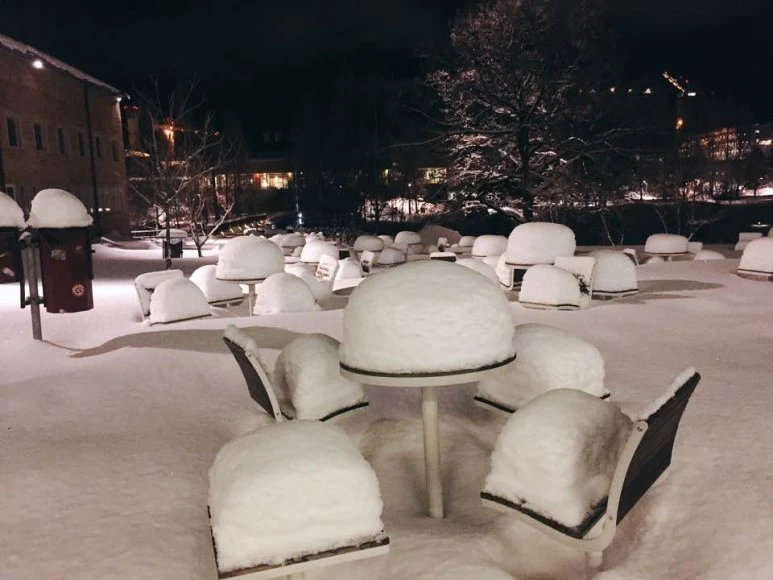 우메오를 가장 열심히 채우고 있는 자연은 뭐니 뭐니 해도 눈이 아닐까 싶다. 점점 볼 X 자동차가 대형 작업차들을 잘 만드는 데는 다 눈 치우다가 생긴 노하우가 아닐까 하는 생각을 하곤 한다. 이 눈들 덕에 멋진 신발이 없다면 길거리에서 강제 댄스타임을 갖게 된다. 우메오에 오실 예정이신 분들은 꼭 안 미끄러질만한 신발을 장만하고 오시길.. 물론 미끄럼 방지를 위해 거친 자갈을 뿌리긴 하지만, 눈이 많이 올 때는 그 자갈들 마저 눈에 파묻히고, 휴일 동안은 자갈 뿌리는 사람들도 쉰다. 눈들이 질척거리지 않아서 발이 엄청 시리진 않지만 미끄러운 건 언제나 조심해야 하는 이곳이다.