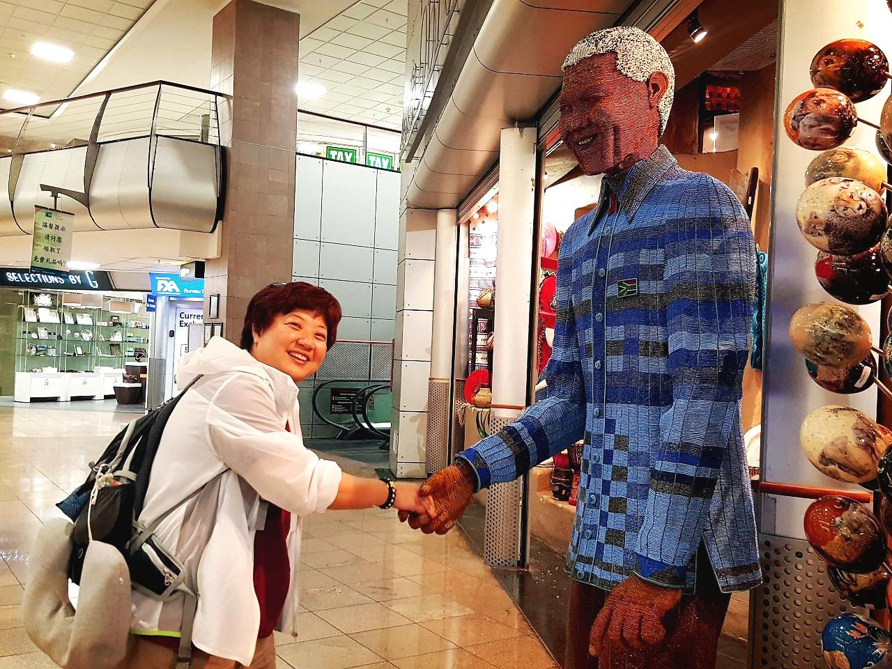 공항 안에는 사람보다 큰 넬슨 만델라 모형이 보이고 악수하는 모습을 하고 있는 그와 악수를 해야만 할 것 같은 느낌이 들었다. 난 그 와 악수를 했다.