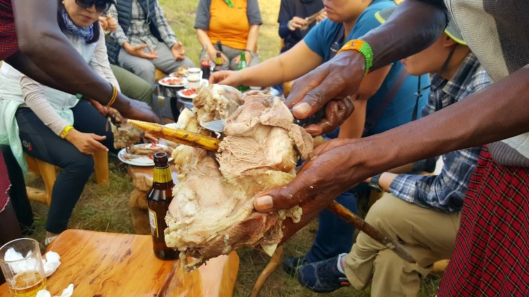 저녁을 먹은 후 일행 중 한 명이 양다리 하나를 사 왔다며 마사이에게 구워달라고 청했고 마사이는 부족의 전통방식으로 모닥불에 양다리를 굽기 시작했다.