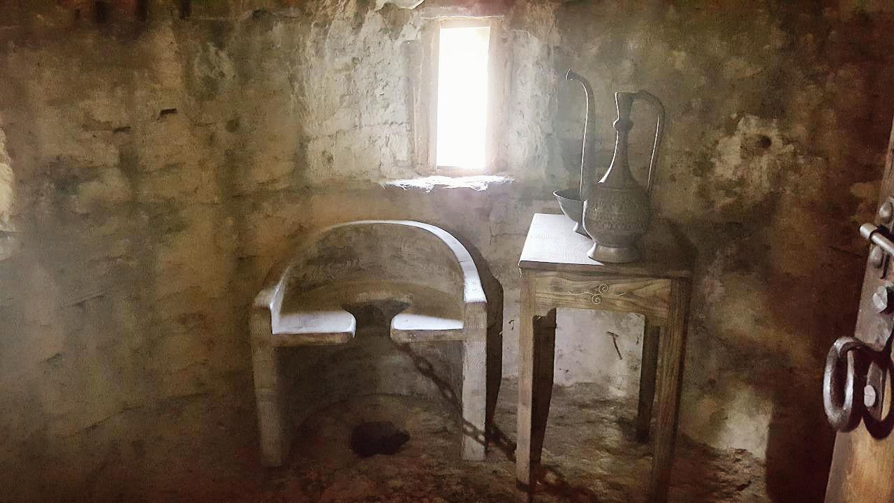 파란 지붕의 그레미 수도원은 약간의 계단을 올라가야 한다. 이쯤에서 비슷비슷한 모양의 성당인지 수도원 인지도 헷갈리는 건물들을 보고 있자니 살며시 짜증이 올라오는데 계단까지 오르려 하니 짜증이 더 샘처럼 솟는 것 같았다. 눈으로만 한번 담고, 사진으로 또 한 번 담고 그대로 뒤돌아서려 했는데 '이곳까지 왔는데 저걸 못가?' 하는 생각이 든다. 계단을 따라 올라가니 화려하지 않지만 소박한 예배당도 있었는데 그보다 눈에 뜨인 건 수도원의 방(?) 아니면 화장실 같은 공간이었다. 그 옛날 시대의 양변기 시초였을까?... 옆에는 손 닦는 그릇과 주전자도 있는 것이 격식은 다 갖춘 듯이 보였다.