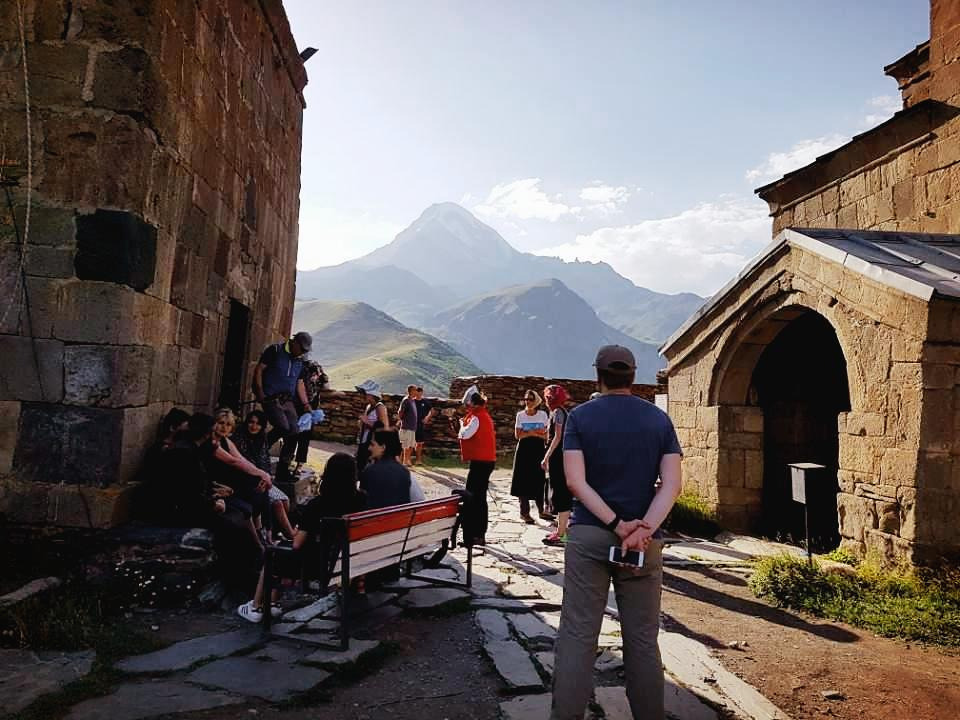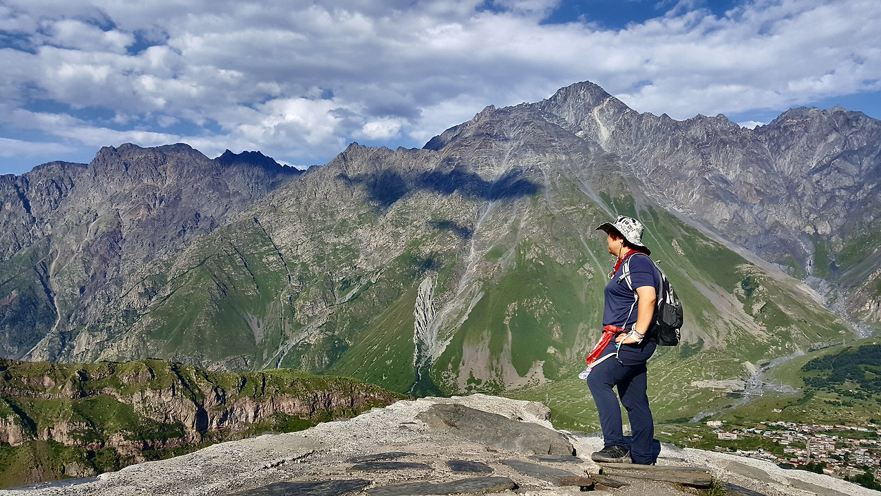 카즈베기(Kazbegi)는 조지아의 최북단이며 북쪽으로는 러시아와 접하고 서쪽으로는 남오세티야와 근접해 있으며 코카서스 산맥 북사면의 일부로 테르기, 트루소 그리고 스노강 계곡에 둘러싸여 있는 국경마을이다. 이곳으로 오는 내내 보이는 곳도 스위스의 작은 시골 동네처럼 정겹고 예뻤지만, 카즈베기에 들어서면서 숙소로 가는 길에 보이는 카즈베기 산은 차창밖으로 보이는 만년설에 쌓인 모습만으로도 감탄을 자아내는데 그 밑의 스테판츠민다 마을과 어우러져 사진으로만 보던 풍경보다 훨씬 멋진 풍경을 자아낸다.