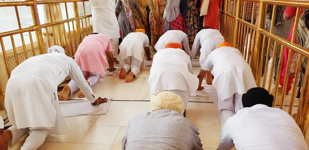 사원으로 들어가는 길에 수행 중인 시크교도들
