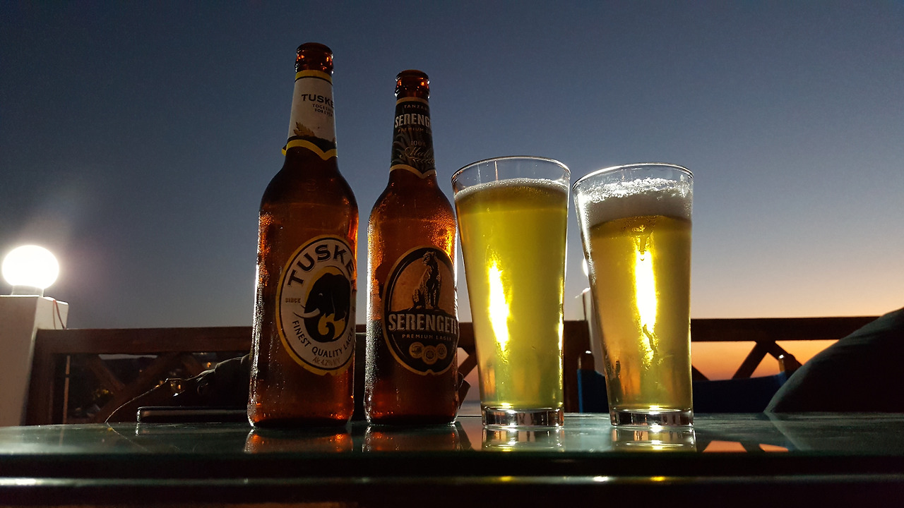 저녁은 오래간만에 럭셔리하게 했다. 바다가 보이는 테라스를 갖고 있는 고급 레스토랑에서 시푸드와 맥주도 시켰다. 케냐 맥주 투스커와 탄자니아 맥주 세렝케티