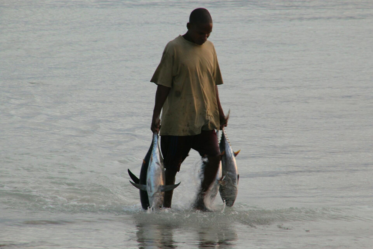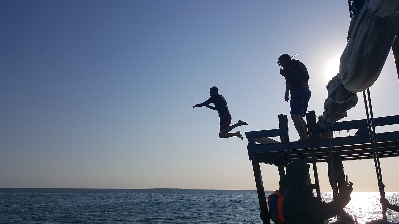 그것을 본 작은 흑인 꼬마가 나에게 다가와 내가 꼭 쥐고 있던 천 쪼가리를 앞부분을 잡고 나를 데리고 다녀준 덕분에 물속의 풍경을 살짝 엿볼 수 있었다. 꼬마는 나를 이끌고 좀 더 깊은 물속으로 가려했고 그 와중에 물속을 돌아다니는 작은 물고기들이 눈에 보이는 순간, 자유롭게 홀로 돌아다니고 싶다는 생각은 있었으나 내 몸은 내 마음과 달리 더 경직되고 있었다. 결국! 난 꼬마에게 'NO, NO'를 외쳤고 꼬마는 웃으면서 나를 배위로 올려주었다.