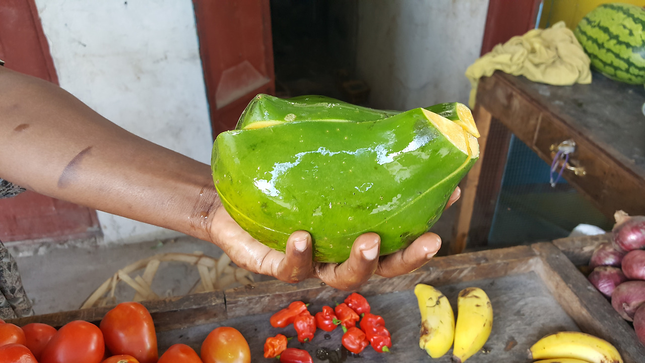 환전소에서 대기하다 바로 옆에 과일가게에 눈이 갔다. 커다란 파파야가 있어 좌판에서 먹게 썰어 달라고 하였다. 이 곳에 사람들은 과일을 전부 사 갖고 가는지 과일가게 주인은 과일을 썰어달라는 우리를 의아해하면서 썰어줬다. 과일은 달고 맛있었다.