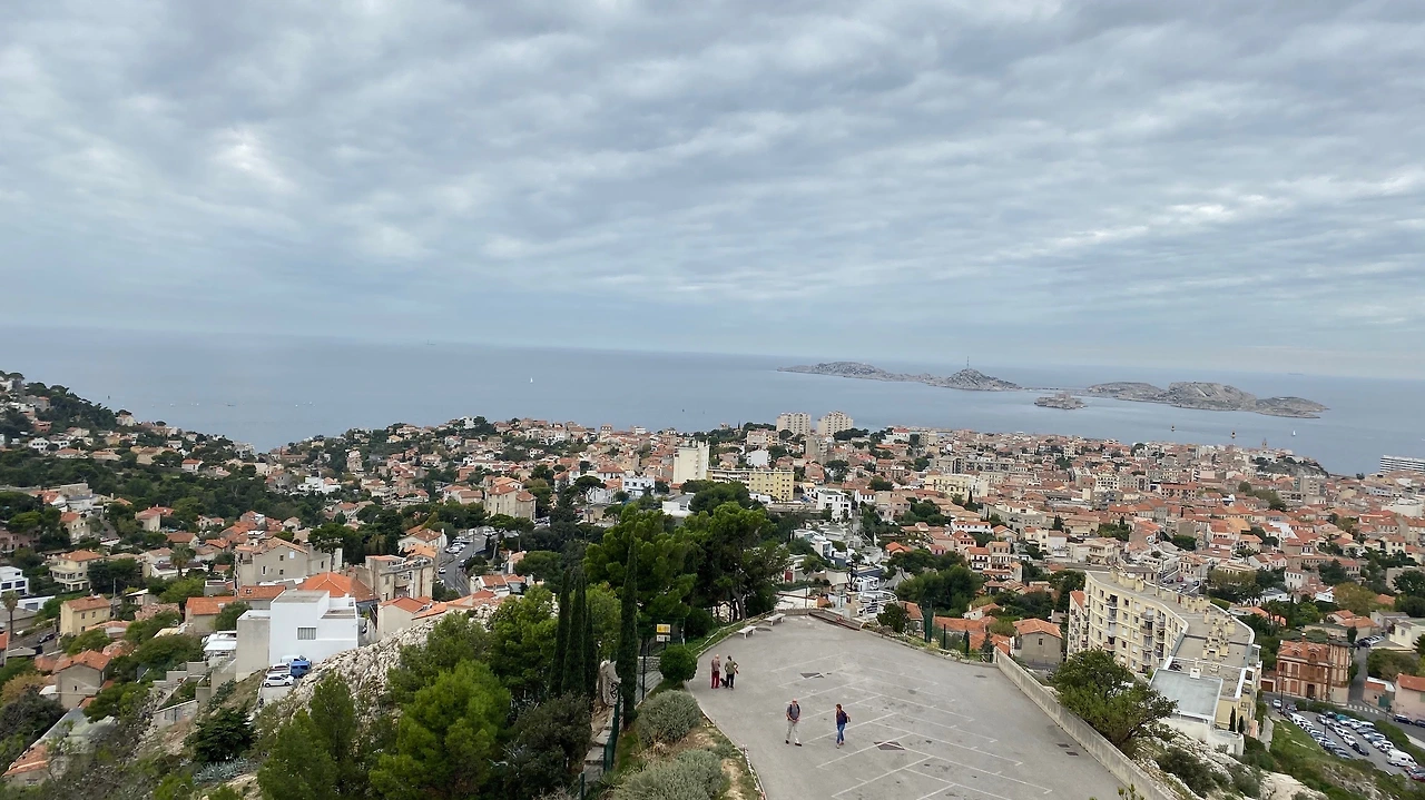 그렇게 꽤 올라가다보면 마르세이유 대성당이 나온다. 대성당 앞에 주차장에 차를 댈 수 있으니, 그쪽에 주차를 하고 대성당 내부와 외부를 한바퀴 돌면서 주변 경치를 구경했다. 이날은 날씨가 약간 흐려서 산뜻한 풍경은 아니었지만 가파른 오르막길을 올라온만큼 바다와 시내 전경을 한눈에 볼 수 있었다.