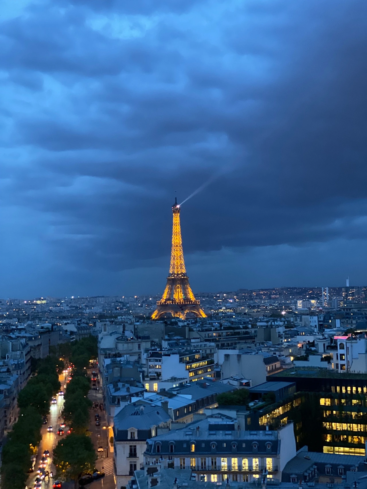 개선문을 중심으로 파리 시내를 가로지르는 도로들이 쭉쭉 뻗어있다. 사진으로 보는 것보다 실제로 보는 게 훨씬 야경이 멋지다는! 당연히 파리의 시그니처인 에펠탑도 볼 수 있다.