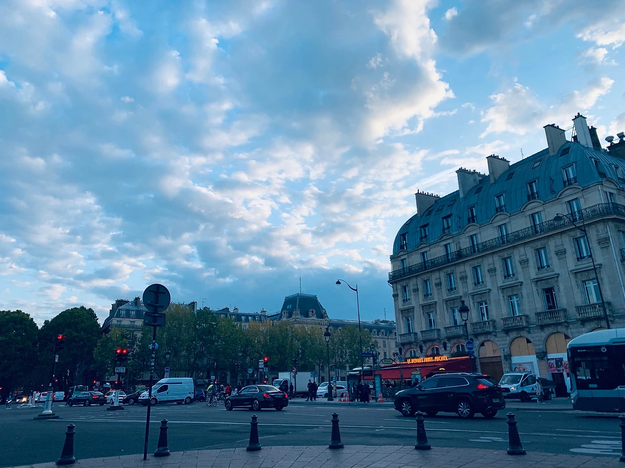 파리에 도착한 첫날밤 남편이 경고(?) 했던 것처럼 남프랑스와 달리 파리는 일정이 빡빡했다. 머무르는 일정 매일 가이드와 함께하는 워킹투어를 예약해 두었기 때문이다. 둘째 날 아침부터 우리는 투어 일정이 있었기 때문에 서둘러 숙소를 나왔다. 아침 일찍 일어나서 대충 아침을 때우고 서둘러 숙소를 나오느라 정신이 없었는데, 그런데 웬걸! 하늘이 진짜 너무너무 멋지더라! 여행 내내 대부분 날씨가 좋았는데 특히 프랑스 여행하는 동안은 날씨가 더 좋았다.