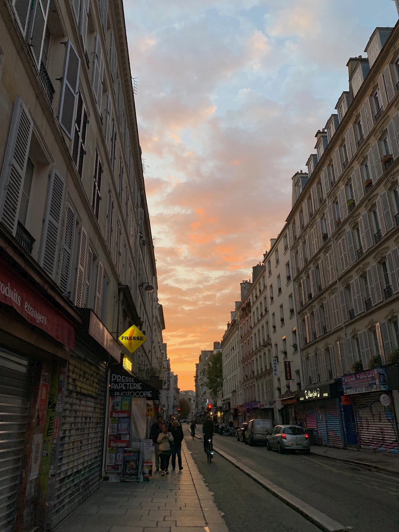 아마 아침 7시쯤 되었던 것 같다. 이른 아침 출근하는 사람들이 바쁘게 움직이는 아침 골목. 새벽노을이 그림같이 펼쳐진 하늘에 기분이 진짜 좋았다. 프랑스나 한국이나 똑같은 대기권을 공유하는 같은 지구인데 이렇게 느낌이 다르다니!