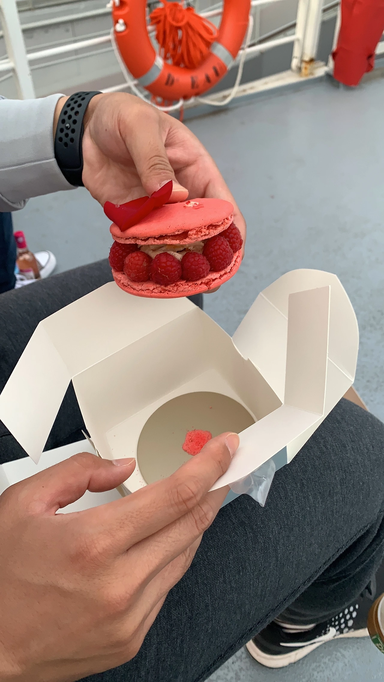 바토무슈 선착장에 도착해서야 포장을 뜯었다. 가장 유명하고 시그니처 메뉴라고 해서 큰 기대 없이 한 입 베어 물었는데 먹자마자 깜짝 놀랐다. 너무 맛있어서; 먹어보기 전에는 대체 장미맛이 어떤 맛이길래 맛있다고 다들 난리인 거지?라는 생각을 했었다. 오 세상에. 뭐 장민지 뭔지는 모르겠지만 산딸기의 맛과 꼬끄의 향기로운 맛이랑 안의 필링이 진짜 절묘하게 어우러져서 정말 맛있는 맛이었다. (이렇게 밖에 표현 못하는 나의 어휘력의 한계가 답답하다.) 마카롱을 별로 안 좋아하는 남편도 맛있다고 인정한 맛. 한 개에 16유로가 넘는 가격이었지만 그 가격을 주고 먹을만한 맛이었다. 나중에 프랑스에서 유학했던 지인이 이야기하길, 본인은 라뒤레보다 여기가 훨씬 더 맛있다고 생각하는데 사람들이 라뒤레만 알고 여기를 모르고 지나가는 사람들이 많아서 속상했다고 하더라 ㅋㅋㅋ 본인도 여기가 더 맛있다고 생각한다고ㅋ. 여하튼 디저트 좋아하는 파리 여행객이라면 꼭 드세요 제발!!