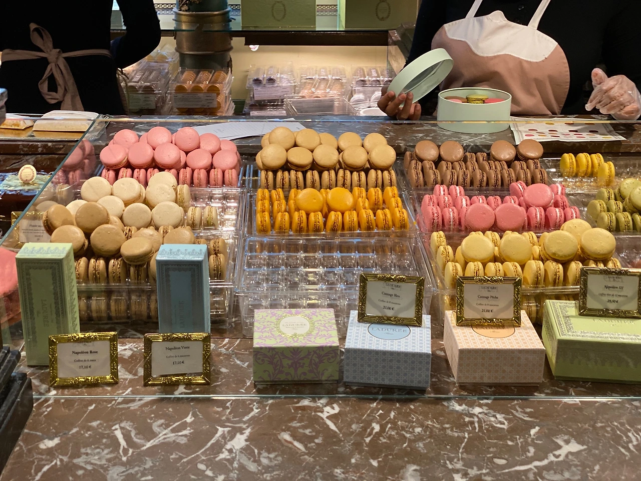 꽤 오랫동안 줄을 서서 기다려야 하는 상황이었는데, 우리가 마카롱을 엄청 좋아하는 편이 아니기도 하고 예매해 놓은 유람선 시간이 좀 촉박하게 남아있어서 가게와 마카롱을 구경하고는 그냥 나왔다. 그렇게 나와서 뭔가 마카롱 한 번은 먹어보고 싶어서 찾다가 '파리에서 마카롱으로는 사실 여기가 더 유명하다!'라는 느낌의 후기를 발견했고, 마침 가는 길에 피에르 에르메 매장이 있길래 가장 유명하다는 이스마한을 샀다. 뭔가 쇼핑몰 1층에 있는 팝업스토어 같은 느낌의 매장이었는데 사람도 그렇게 많지 않고, 줄을 안서도 금방 구매할 수 있어서 퀵하게 마카롱을 포장해서 나왔다.