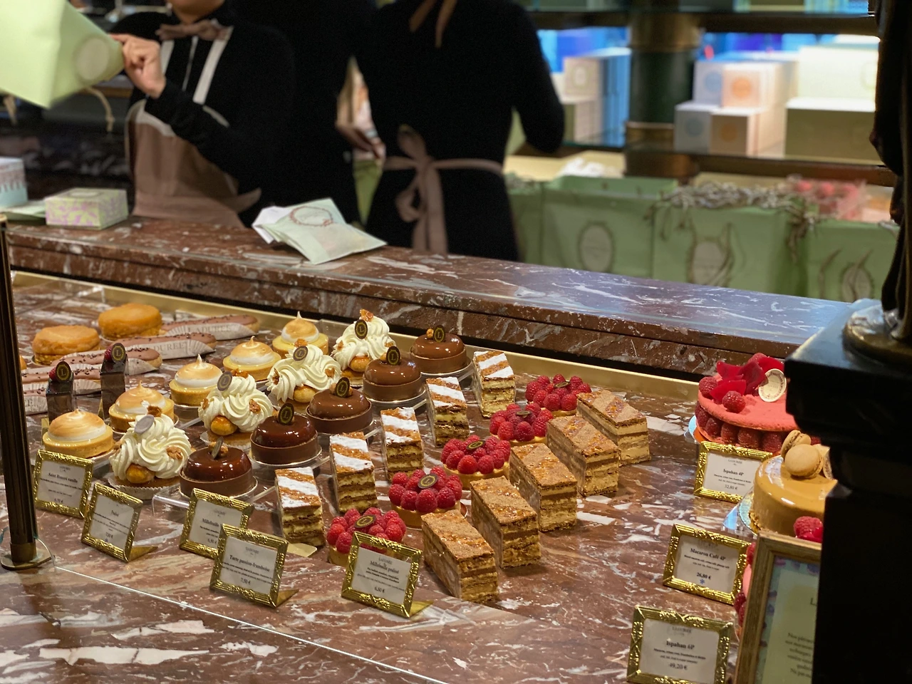어제는 샹젤리제 거리 초입 부분에서 개선문까지 버스를 타고 이동했기 때문에 오늘은 샹젤리제 쪽을 걸어서 구경해보기로 했다. 우리는 대로변을 중심으로 이동했는데 큰 도로를 중심으로 구경한 샹젤리제 거리의 분위기는... 각종 브랜드들이 모여있는 넓~은 쇼핑거리 같은 느낌. 명동 같은 느낌이었다. 안쪽 골목으로 들어가면 다양한 명품 브랜드들이 있다고 하는데, 우리 여행에는 쇼핑은 해당사항이 없었으므로 그냥 큰 길로만 구경하면서 다녔다. 마침 샹젤리제 거리에 유명한 마카롱 집이 있다고 해서 먹으러 가보기로. 처음에 방문한 곳은 라뒤레였는데, 과연 전 세계의 관광객들이 다 모여있는 느낌. 들어가는 입구부터 줄을 서야 하는데, 안에서 차를 마시면서 먹을 사람들과 마카롱만 사서 갈 사람들의 줄을 구분해서 받는 것 같았다.
