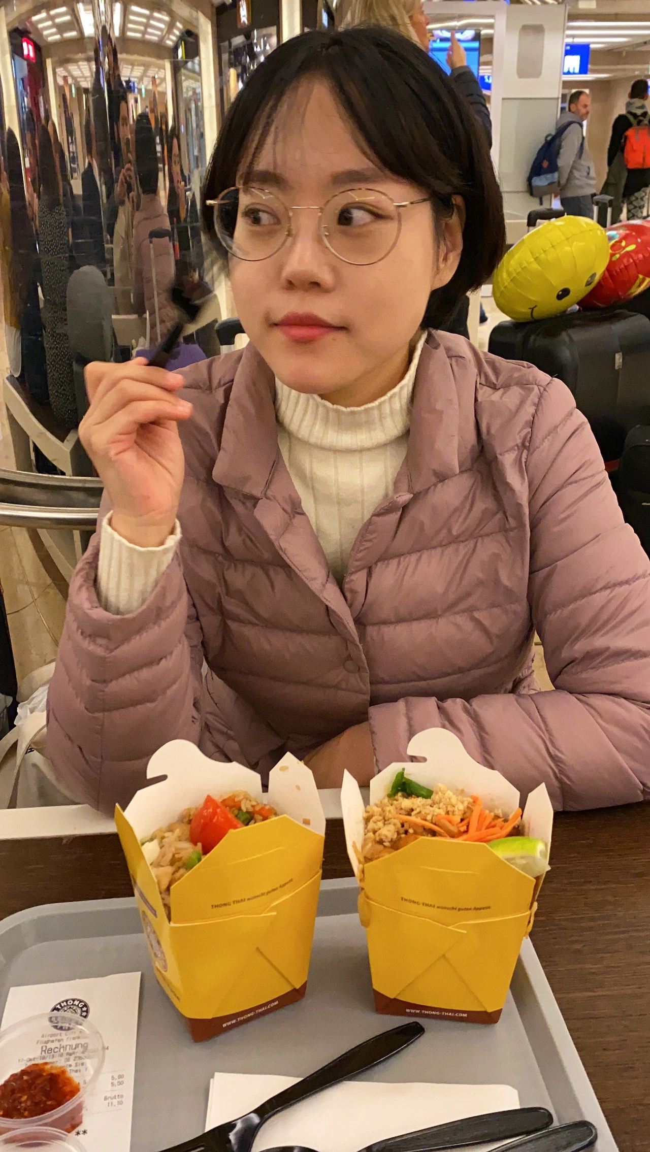 20~30분 정도 운전을 해서 우여곡절 끝에 프랑크푸르트 공항에 있는 같은 렌터카 회사의 지점으로 찾아갔다. 상황을 설명하니 우리가 희망하는 크기의 차가 오늘 반납될 예정이긴 한데 언제 반납될지 모른다며 기다려야 한다는 대답을 들었다. 오 이런.. 그렇지만 미니밴을 몰고 다닐 수 없으므로 공항에서 좀 기다려보기로 하고 공항 안에 있는 베트남 음식 체인점에서 컵밥을 사 먹고 공항 근처를 구경하면서 시간을 때웠다.