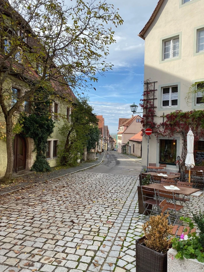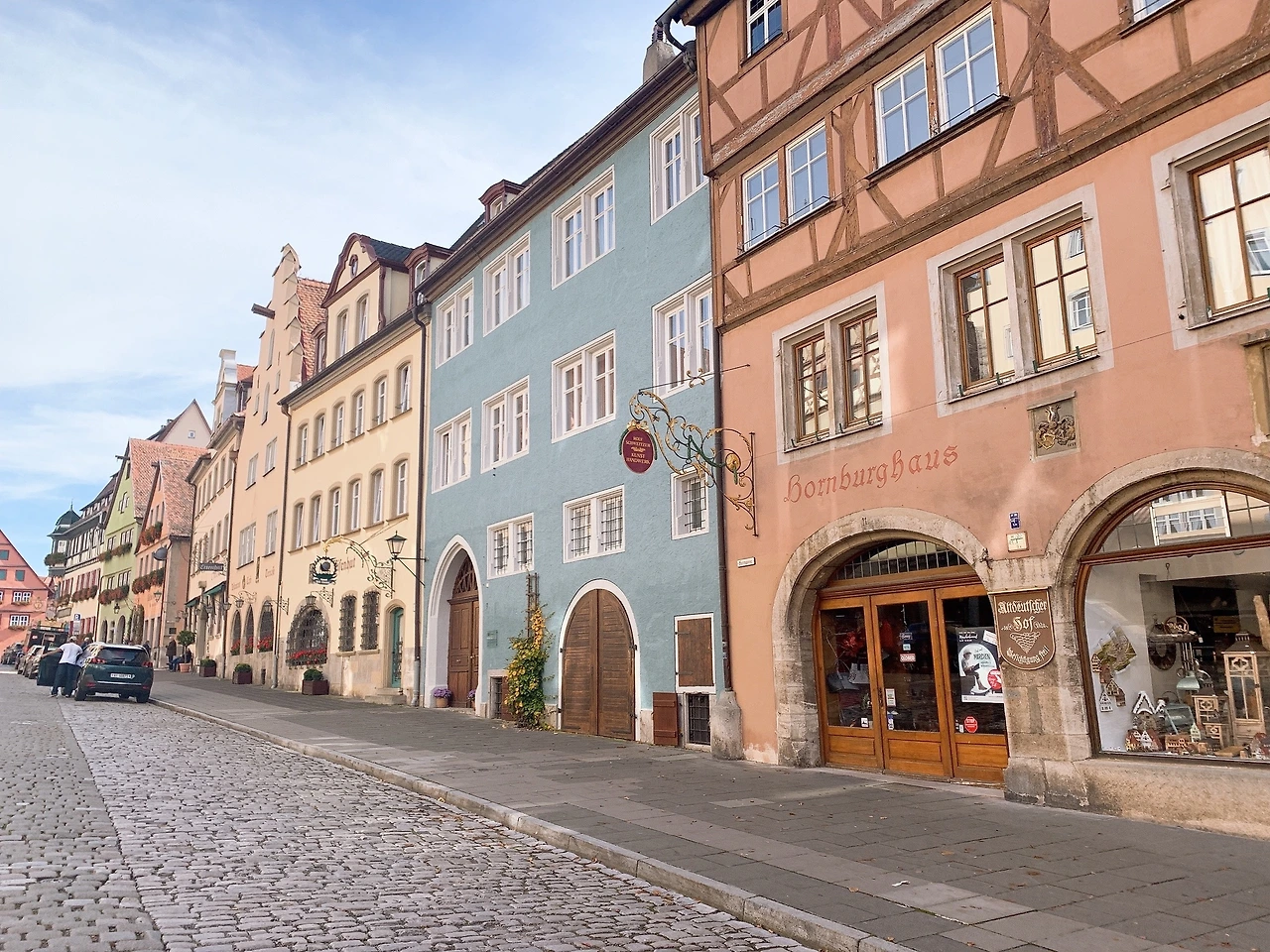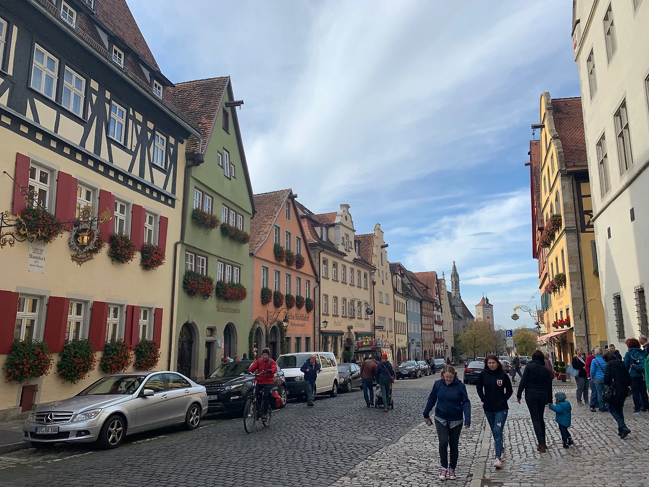 카페를 나와서 도시 전체를 한 바퀴 둘러보기로 했다. 유럽에 여행 와서 몇 개의 도시를 이동하면서 느낀 것 은 각각의 도시마다 분위기와 느낌이 비슷하면서도 다르다는 점이다. 각 나라와 도시의 건물들이 비슷비슷한 것 같은데 막상 다녀보면 건물들의 디테일이 다 달라서 그 나라와 도시 특유의 분위기를 만들어 낸다. 오래된 건물의 외관을 그대로 지킨 도시와 동네가 많아서 세월과 역사가 느껴지는 것과 건물의 색깔이 파스텔톤으로 구성되었다는 점은 비슷한데, 각 나라별로 건물의 구조와 외장? 그리고 창문의 모양 등 디테일이 달라지는 게 그 도시만의 캐릭터를 만드는 것 같았다. 특히 로텐부르크는 다른 유럽뿐만 아니라 독일의 다른 도시들 보다도 훨씬 '동화 같고 아기자기한' 분위기가 강했다.