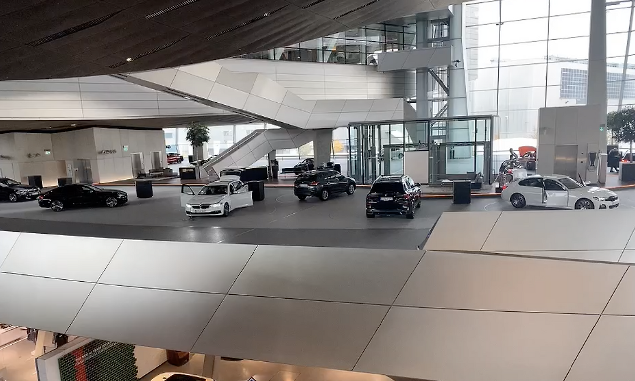 지하 주차장에 주차를 하고 건물 내부로 올라가면 1층에는 기념품샵과 간단한 식사를 할 수 있는 식당, 그리고 여러 자동차들을 전시해놓은 전시장이 있고, 2층에는 출고장과 BMW 바이크를 전시하는 전시장 & 카페테리아가 있다. 2층 출고장의 모습이 특이했는데 차량을 출고받는 고객이 거의 1시간 남짓 본인이 출고받은 신차에 대해서 직원에게 매우 상세히 설명을 받고 나서 차량을 인도받아 나간다. 직원이 고객과 1:1로 매칭 되어서 해당 차량이 갖고 있는 여러 가지 기능들을 하나하나 세세하게 설명하고 시연하면서 고객이 차량의 기능을 충분이 이해하고 사용할 수 있도록 설명해주는 모습을 실시간으로 볼 수 있다. 여기 BMW Welt에서 차량을 출고받으려면 6개월 정도 대기해야 출고받을 수 있다고 한다. (출처 : 남편)