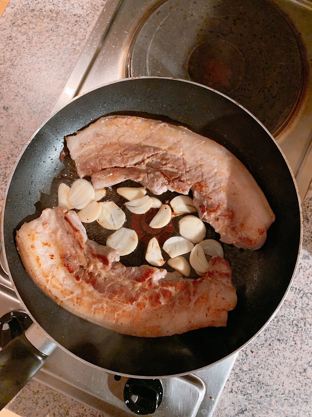 내가 삼겹살이 먹고 싶어서 고기를 샀는데 정작 굽고 나니 먹기 싫어서 맥주만 마신 건 반전 ㅋ 우리나라보다 삼겹살 가격이 저렴했고, 맛도 좋았는데 갑자기 돼지고기 냄새가 나서 먹기 싫어서 남편이 전부 다 먹었다.