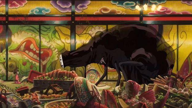 그는 물질로 그녀의 관심을 살 수 있다고 생각합니다. 이 잘못된 생각은 그를 점점 추악하게 만들어 갑니다. 애정에 대한 욕구는 집착으로 바뀌고 결국엔 폭력성을 띄게 됩니다. 감독은 가오나시를 통해 물질을 통해 좋은 관계를 형성할 수 없음을, 또 관심에 대한 욕구가 집착으로 변했을 때 그것의 비참함과 폭력성을 말하려는 것 같습니다.
