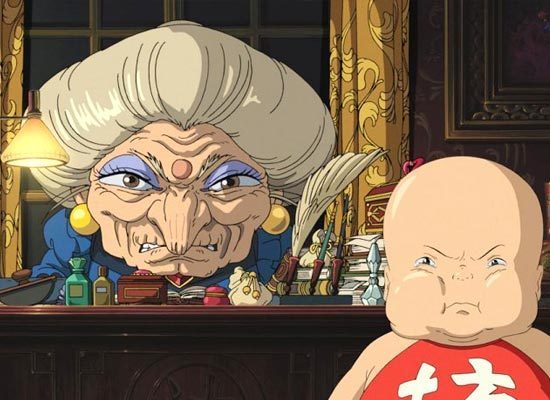 유바바는 목욕탕을 소유하고 사람을 부리는 자본가를 상징합니다. 그녀는 충성을 바쳐 자신의 임무를 수행하다 다친 부하(하쿠)를 쓰레기장으로 보내버리는데요. 노동자를 기계나 부품처럼 취급하는 그녀는 칼 마르크스 책에 나올 법한 무정한 자본가의 모습을 하고 있습니다. 특히 자신의 진짜 자식이 사라져도 가게에 생긴 적자 생각만 하는 그녀를 보면 무정하고 이기적인 탐욕에 눈이 팔려 자신에게 정작 중요한 것을 잃어버리고도 눈치 채지 못하는 어리석은 사람이라는 생각이 듭니다.