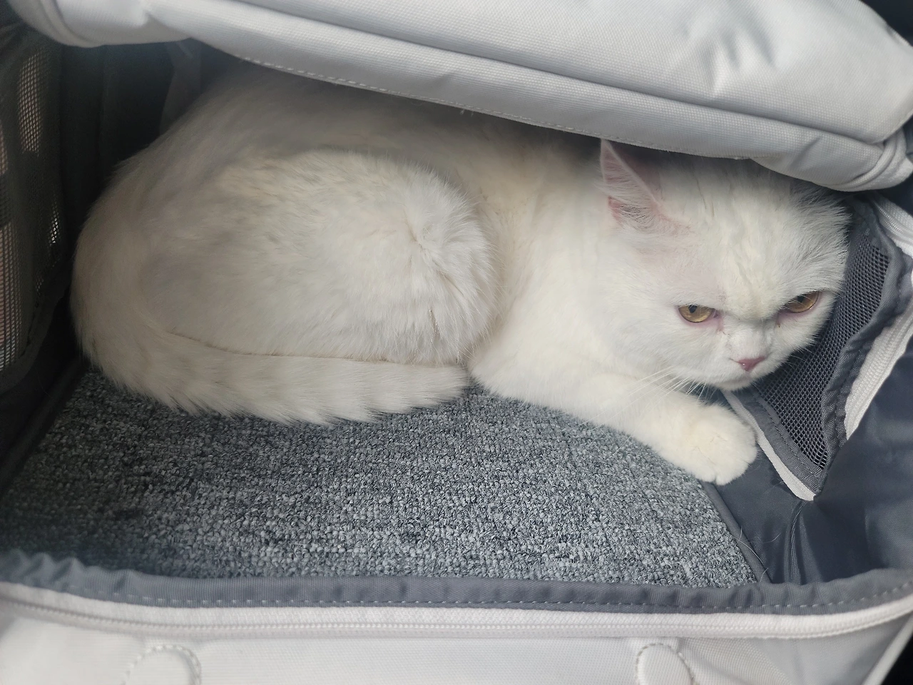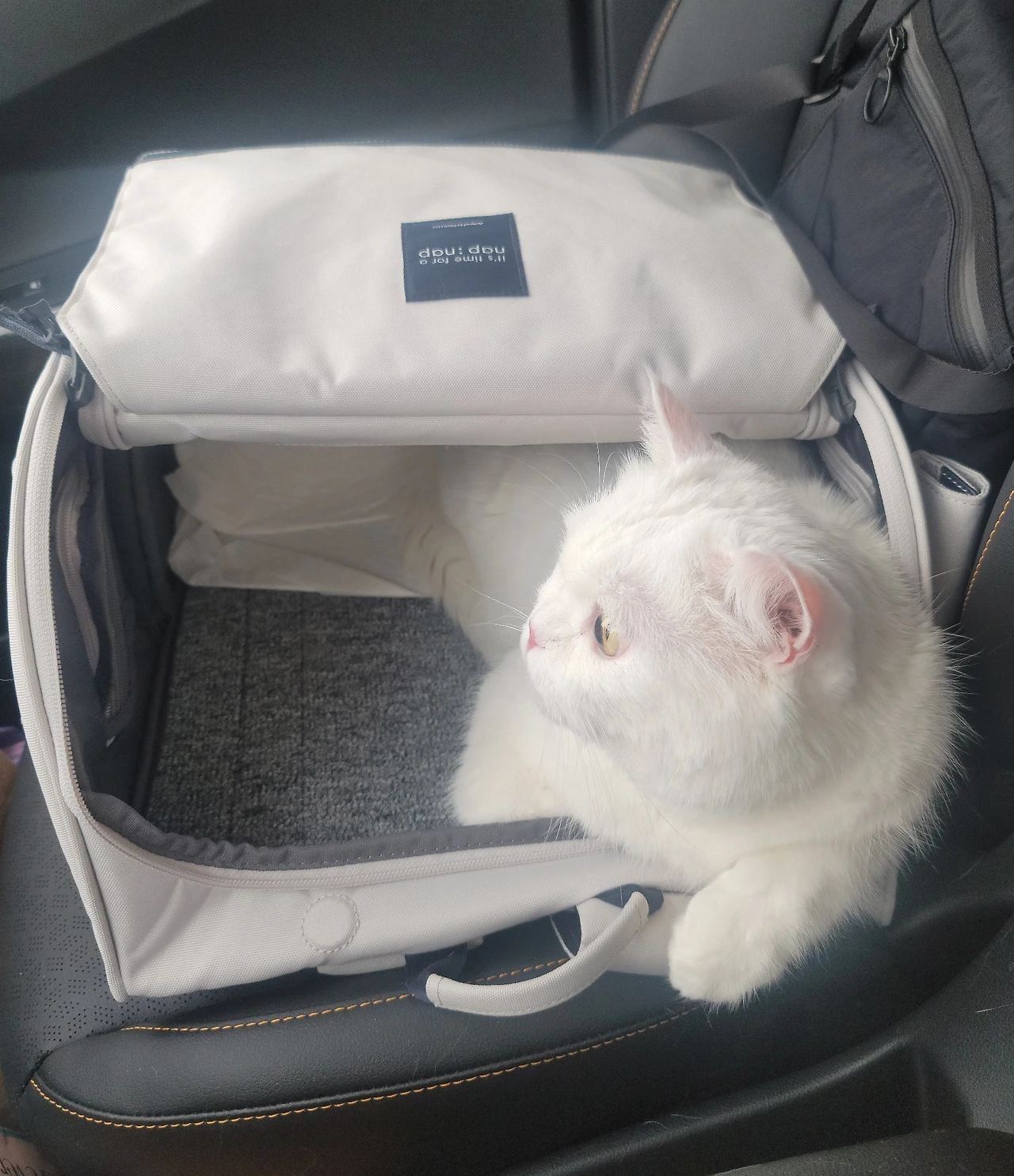 퇴근길에 음주운전 단속 경찰관을 만난 적이 있는데 혹시나 조수석에 고양이가 있다는 게 문제가 될까 봐 가방 뚜껑을 얼른 덮어 없는 척한 적도 있다.