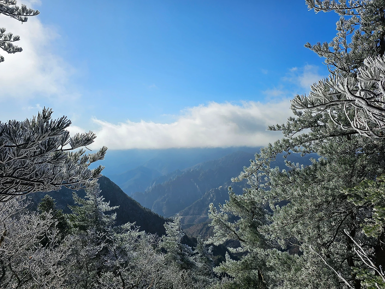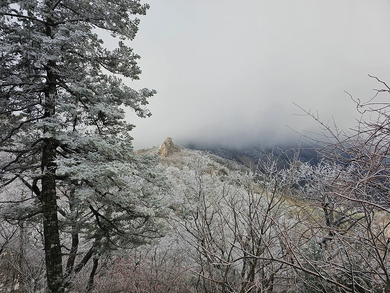 단풍은 한 잎도 붙어있지 않았고, 이미 하얀 상고대가 장관을 이루고 있었다.