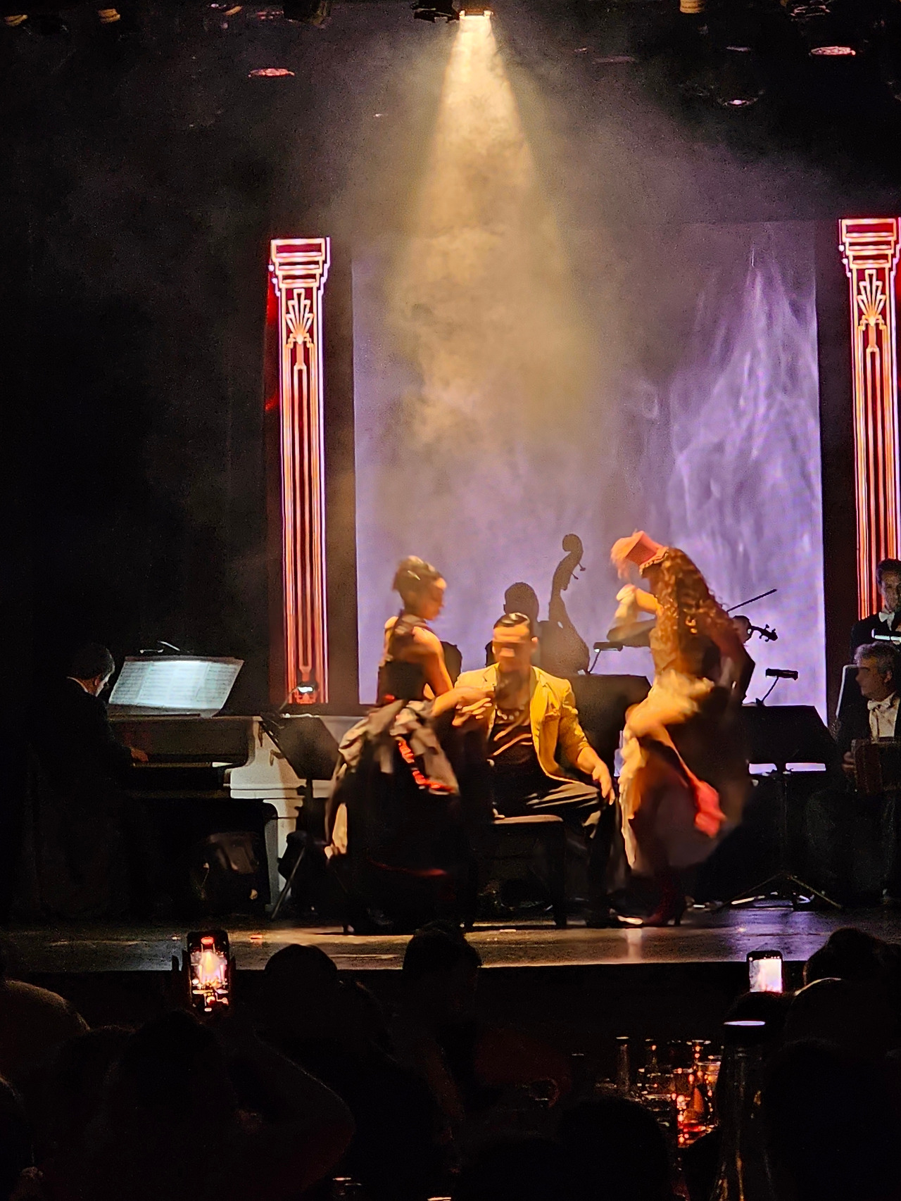 정확히 10시에 실내가 빠르게 어두워지며 핀조명이 켜지고, 악단과 댄서가 모습을 드러낸다.