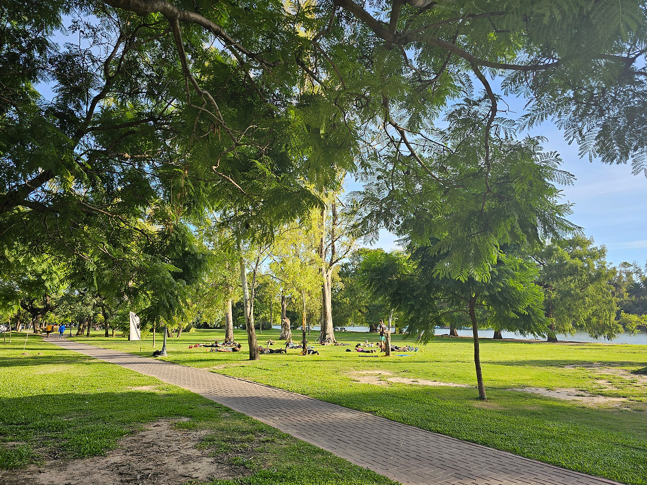 그러나 사실(개방감이고 뭐고...) 그들을 보는 나는 모기 걱정뿐이었다. ㅋㅋㅋㅋ 저렇게 탑만 입고 잔디밭에서 운동을 하면 최소 수십 방은 물릴 거 같은데.... 실제로 한 여자분의 레깅스 위에 모기가 여러 마리가 붙어서 같이 러닝 중인 모습을 보고 나는 벌레기피제를 온몸에 분사하였다.