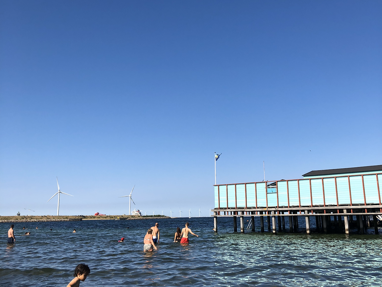 지금은 사회적 거리를 두어야만 하는 시간. 그 구조 물안에는 꽤 많은 사람들이 거리를 유지하며 있었다. 겨울 동안 결핍됐던 햇볕을 쬐며 광합성을 하고 있는 사람들과 여기저기 웃음소리가 들리고 이야기를 나누는 사람이 보인다. 그리고 나체로 물속으로 천천히 몸을 담그는 사람들이 보인다. 수영복을 입는 사람들도 있지만 이곳은 바다 수영을 하는 사람들이 자주 오는 곳으로 나체 수영을 하는 사람이 많이 있다. 이 추운 날에 바닷가에서 해병대도 아니고 ㅎㅎ 평범함 사람들이 수영을 하는 이유는 무엇일까?