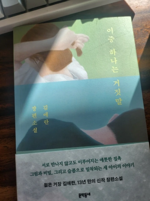 책의 뒤표지에 "그해 우리 셋은 서로에게 거짓말을 했고 처음으로 가까워졌다. 그건 하나의 비밀이 다른 비밀을 돕는다는 뜻이었다."라고 적혀있다. 나는 당연히 책에서 발췌한 부분인 줄 알았는데. 다시 훑어보니 마지막 문장은 p.135에 있는데 앞부분은 책 속에서 찾을 수 없다. 셋을 서로에게 거짓말을 했다고 했다. 아마도 어른들이 아이들에게 했듯이 지켜주고 보호하기 위한 거짓말이지 않았을까. 셋은 소리, 지우, 채운일 테지. 소리와 채운은 서로에게 거짓말을 한 게 확실한데. 채운은 아버지가 죽지 않았으면 좋겠다고 하고 소리는 아버지가 죽지 않을 거라 거짓말해 준다. 지우는 어떤 거짓말을 한 걸까. 막상 다 읽고 났는데도 개운함이 없다. 지우의 거짓말은 어디에 숨어있는 걸까.