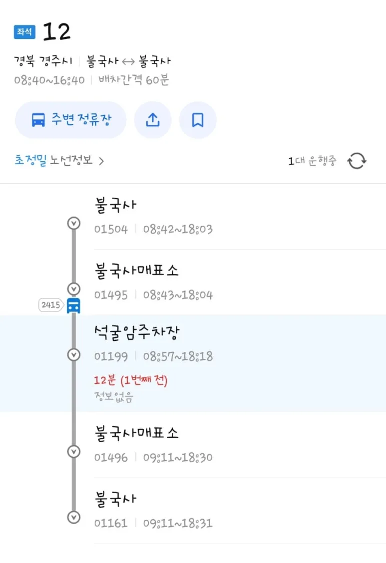 불국사에 내려오는 게 나을 거라고 조언해 주심.