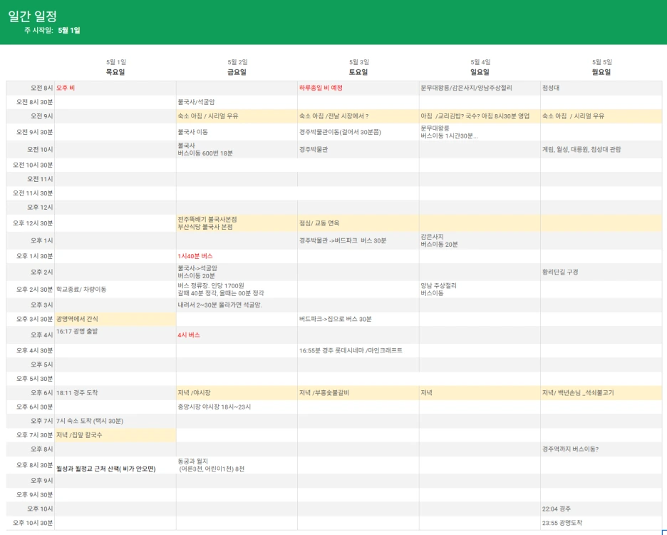 경주 가기 전 여행 일정 계획.