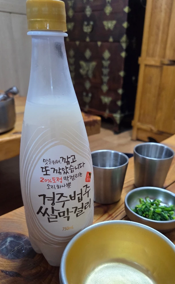 우선 가볍게 경주 법주 쌀 막걸리 한 잔.