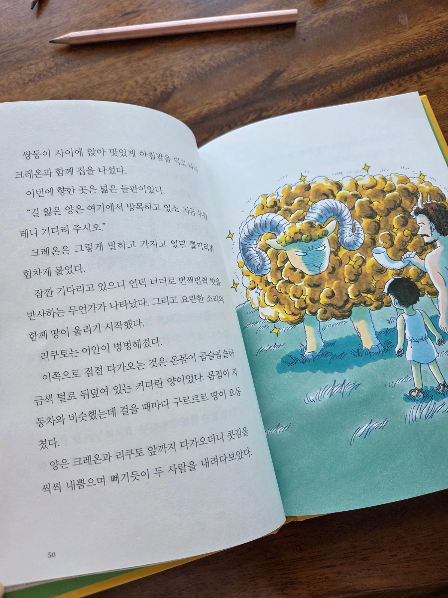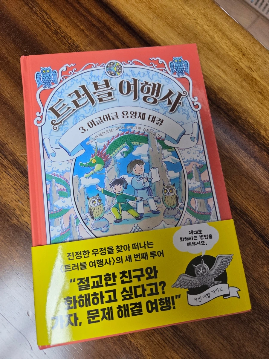 사실 저자까지는 살펴보지 못하고 제목과 간단한 내용이 아이들이 좋아할만 할 것 같아서 후딱 빌려왔다. 나코와 코기 봉봉은 8권 완결 도서로 오랫동안 읽을 수 있었는데 트러블 여행사는 2권으로 끝. 달랑 두 권짜리 책인가. 그래도 그즈음 신화와 지리에 관심이 생기고 있는지라 보여주면 좋아할 것 같아 도서관에서 들고 왔다.