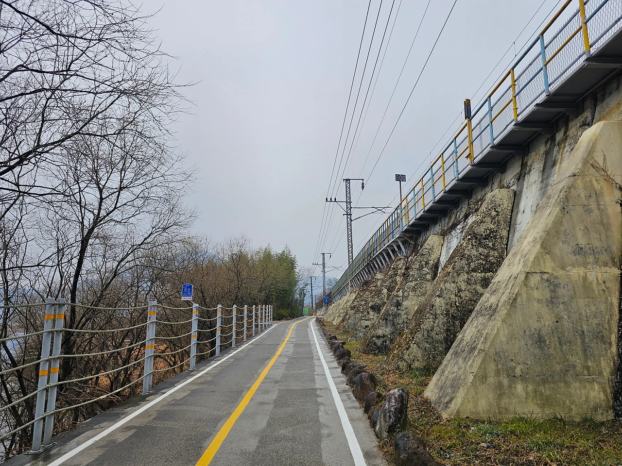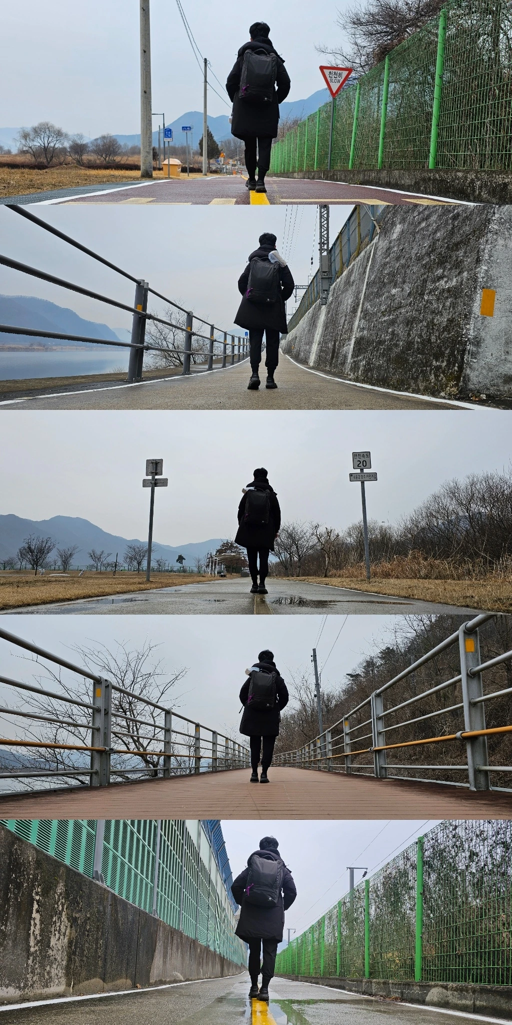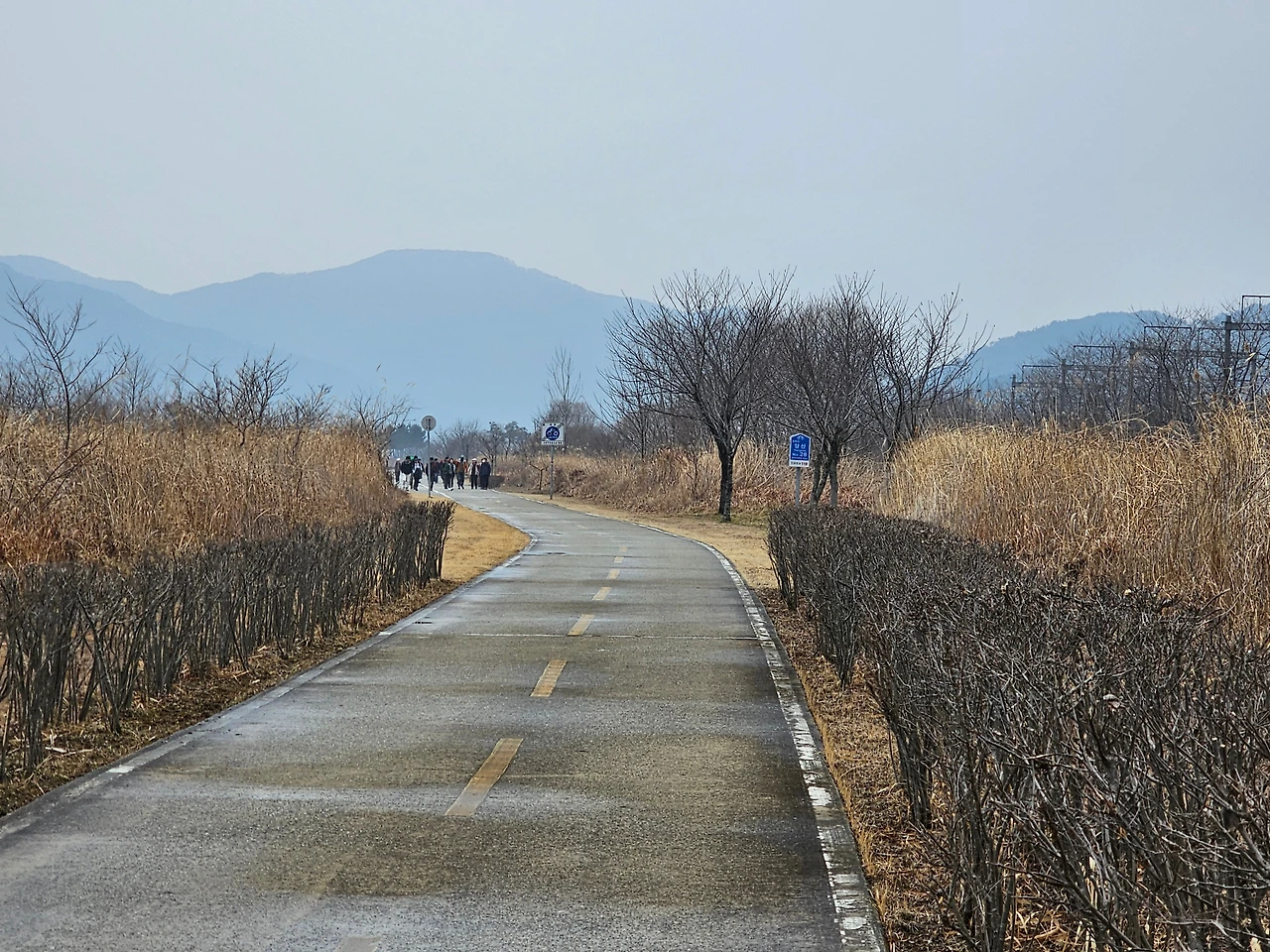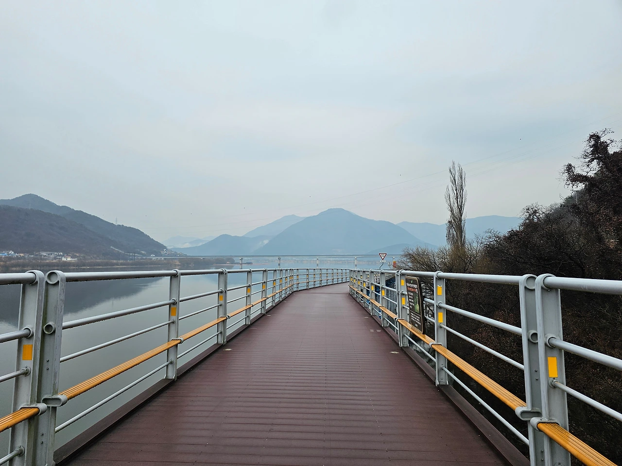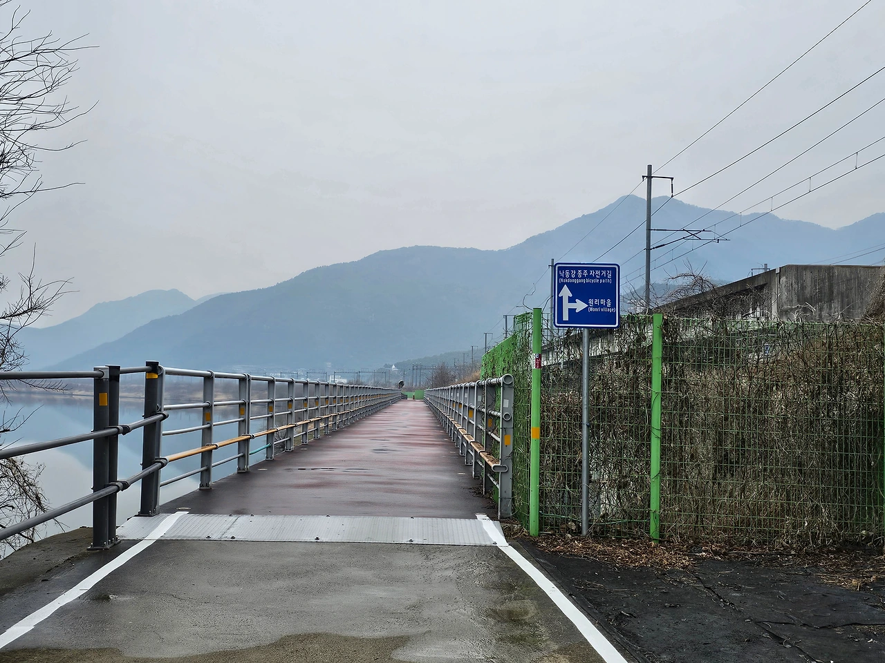 물안개 낀 강을 가로지르는 데크길을 걷고 있자니 물 위를 걷는 신비로운 느낌이었다. 마을이 사라지고 사람이 안 보이기 시작하니 걷기가 꽤나 심심했다. 노래라도 부를까 했지만 아직까지는 쑥스러워서 입 밖으로 나오지 않았다.
