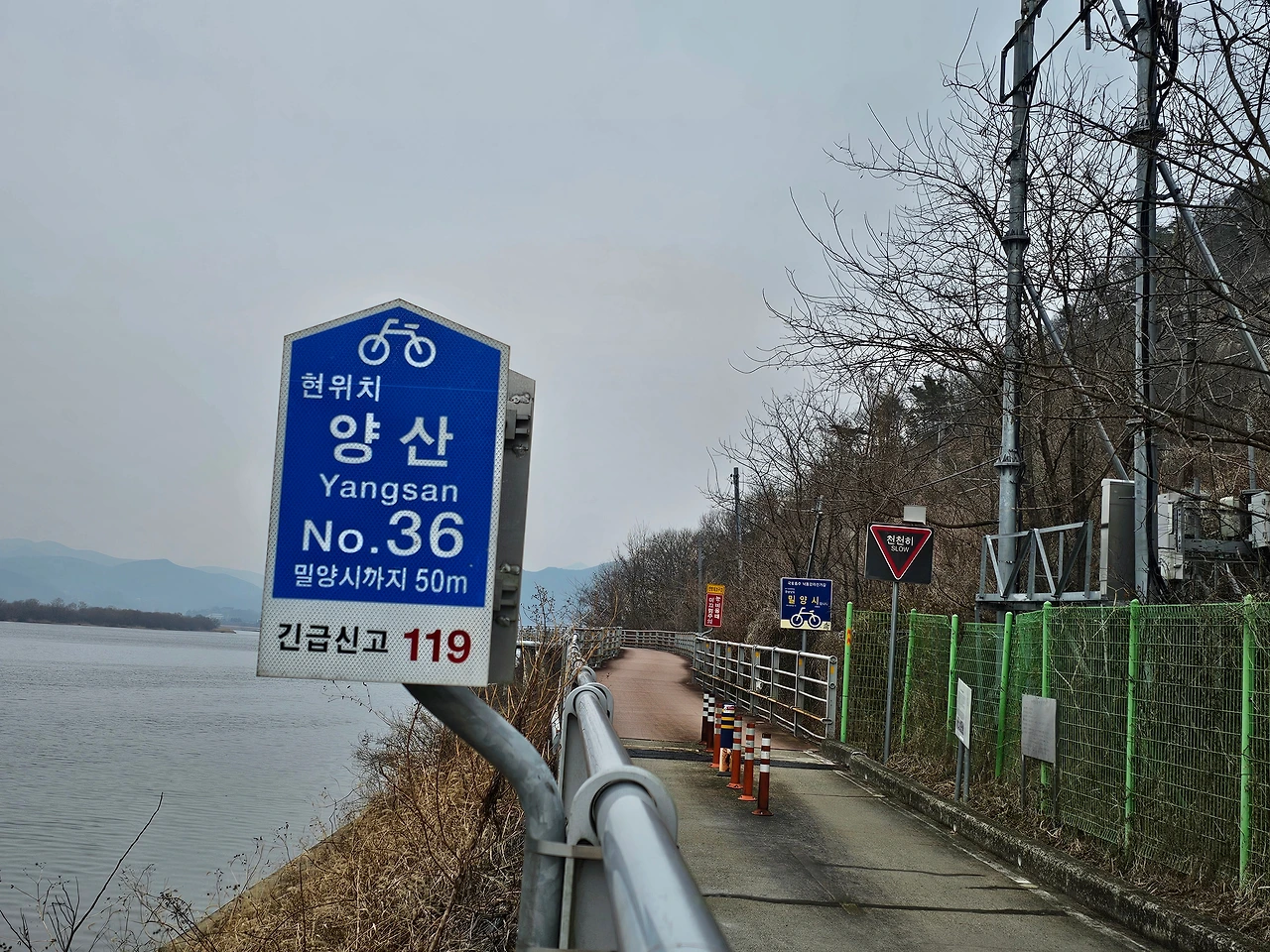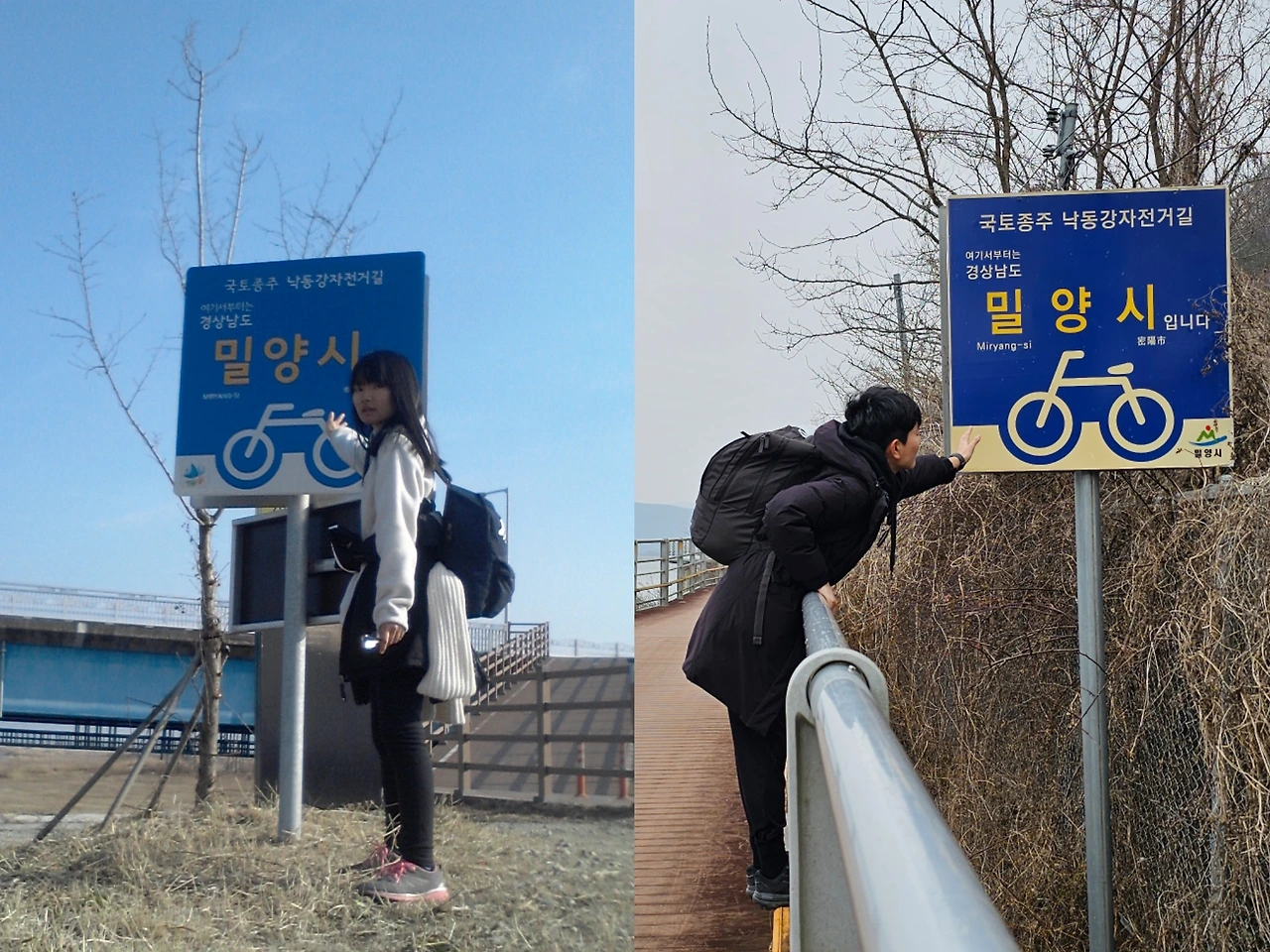 밀양 첫 번째 표지판. 눈을 부릅뜨고 왔음에도 No.1을 보지 못했다. 어쩌면 모든 표지판이 다 설치되어 있는 건 아닐지도?