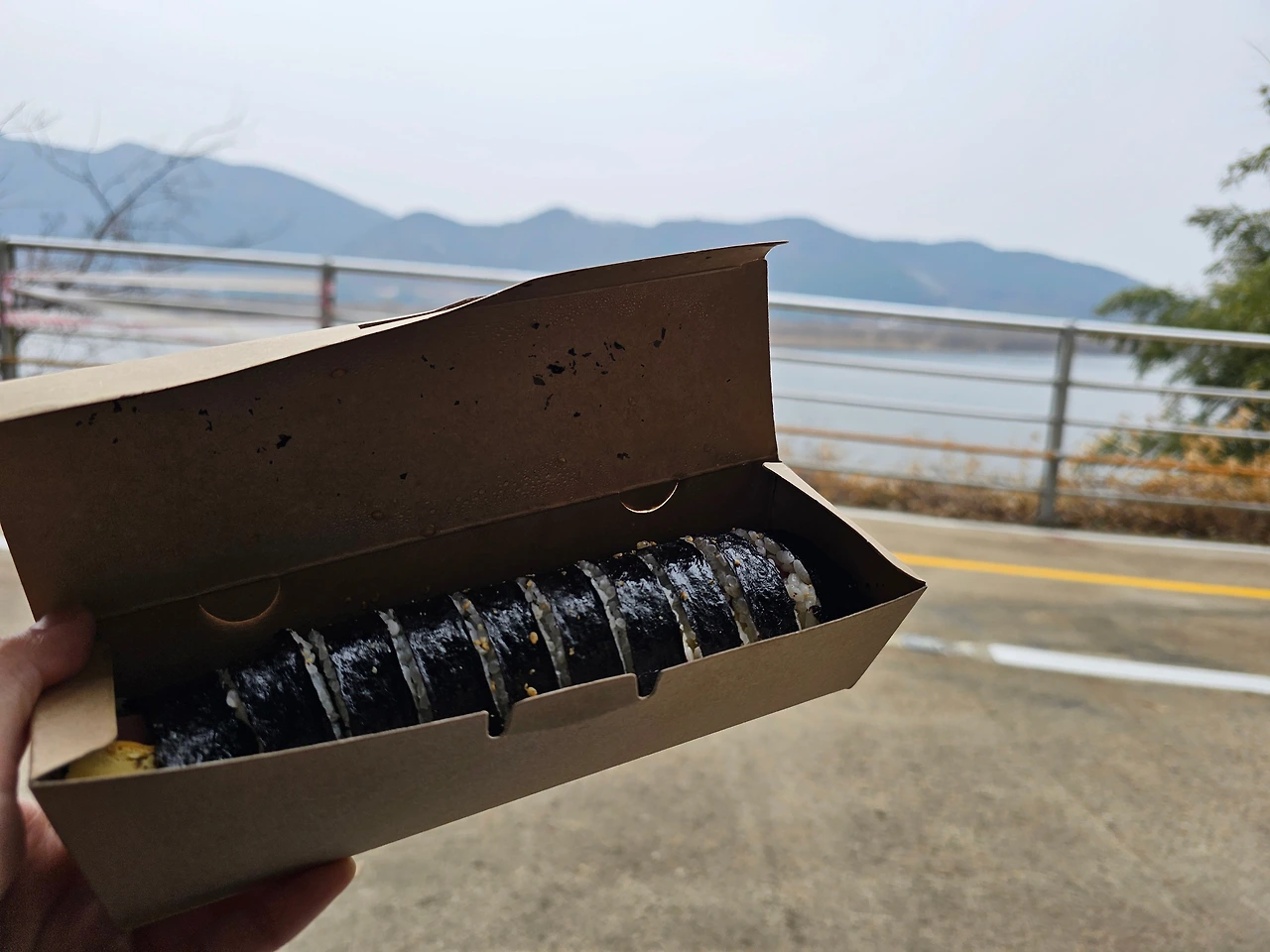 기쁜 마음으로 앉아서 다리를 스트레칭해 주며 김밥을 까먹었다. 따뜻할 때 먹었으면 더 맛있었겠지만... 그래도 맛도리였다!