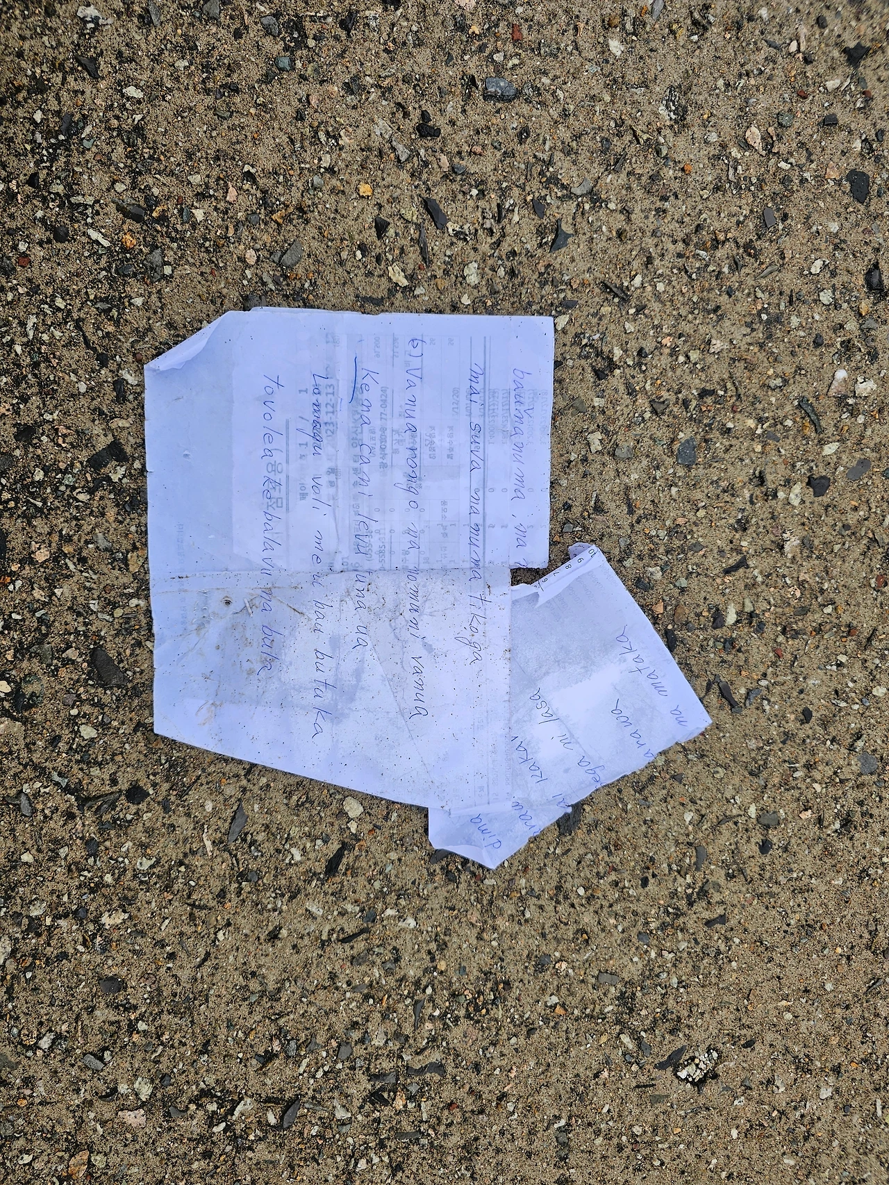 자전거와 보행자 외에는 들어올 수도 없는 이 길에 이 암호틱한 필기가 떨어져 있게 된 비하인드 스토리가 궁금하네요.